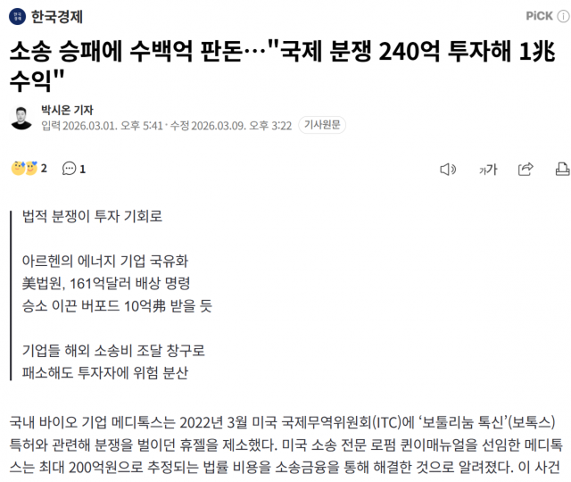 With hundreds of billions riding on lawsuits, an investment of 24 billion in international disputes yielded a profit of 1 trillion.
