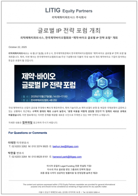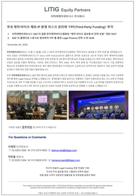 LITIG Equity Partners holds 2025 Korea TPF seminar with Lee & Ko