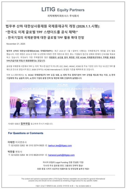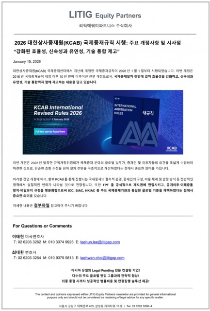 2026 Revision of the KCAB International Arbitration Rules - Korea Adopts Global TPF Standards